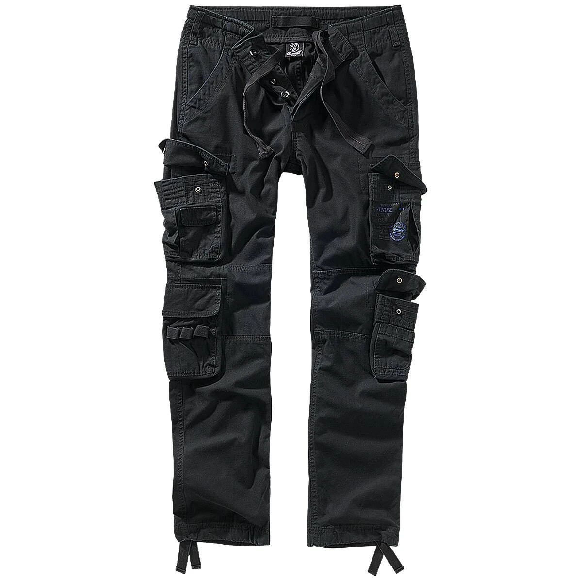 Die Brandit Pure Slim Fit Hose im stilechten Armylook besitzt eine normale Leibhöhe und liegt an den Beinen enger an als die bewährte Pure Vintage Trouser. Sie besticht durch ihren sehr robusten Stoff, ihre hochwertige Verarbeitung und ihren erstklassigen Tragekomfort. Die Hose besitzt 2 schräge Einschubtaschen, 4 große aufgesetzte Taschen mit Patte und Druckknopf sowie 2 Gesäßtaschen mit Druckknopfverschluss. Des Weiteren gibt es einen auffälligen Druck auf der linken Beintasche sowie einen extra breiten Tunnelzug am Bund sowie am Beinabschluss.