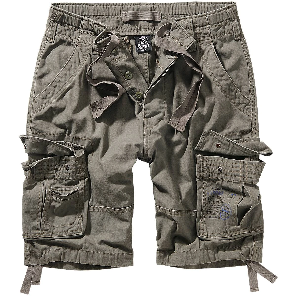 Die Pure Vintage Shorts ist eine exzellent gemachte, zeitlose Cargo-Shorts von Brandit. Sie besticht durch ihren lässigen Schnitt sowie durch ihr leichtes, weiches und strapazierfähiges Baumwoll-Material, welches sich wunderbar angenehm auf der Haut trägt und für optimales Klima an warmen Tagen sorgt. Im Detail besitzt die Shorts zwei große Bein-Cargotaschen mit Patten und Druckknopfverschluss, davon eine mit einer aufgesetzten kleinen Tasche, 2 Front-Eingriffstaschen sowie 2 Gesäßtaschen. Außerdem hat sie einen verdeckten Knopfleistenverschluss, einen mittels Kordelzug verstellbaren Beinsaum sowie am Bund einen verdeckten Kordelzug und Gürtelschlaufen. Damit sitzt die Pure Vintage Shorts perfekt. Der angesagte Vintage-Used-Look wird durch die leicht verwaschene Optik, ein Logo-Patch sowie weiteren Details wie Schlaufen und Ösen erreicht. Auf der linken Cargotasche befindet sich ein toller Aufdruck.