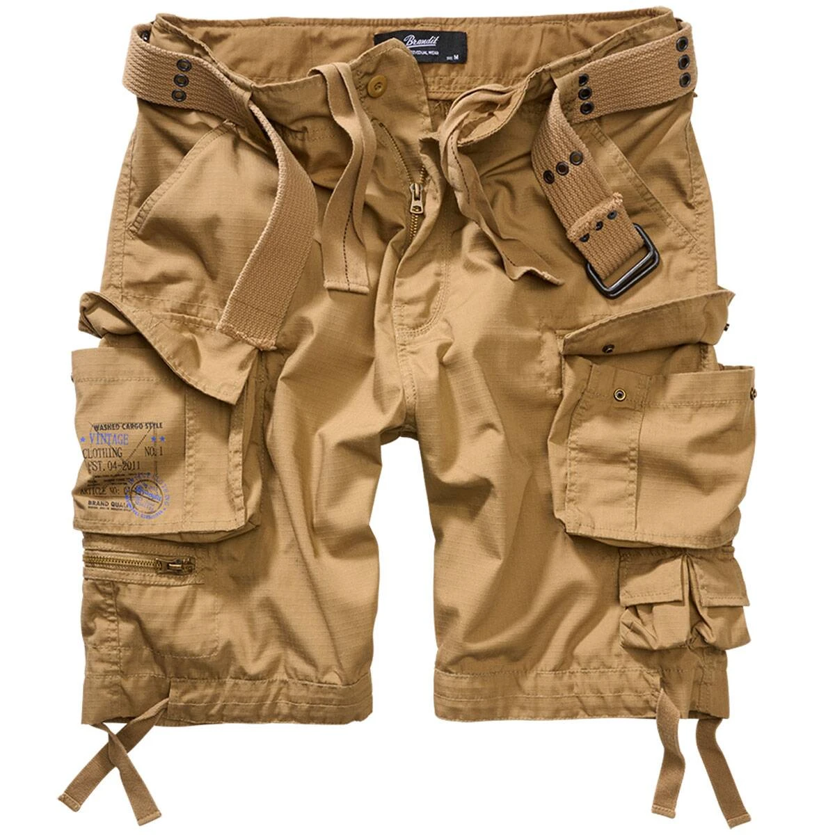Die bewährte Brandit Savage Shorts gibt es jetzt auch aus leichtem und robustem RipStop-Material. Damit ist sie nicht nur stylisch und bequem, sondern auch für härtere Outdoor-Einsätze bestens geeignet. Sie besitzt 2 schräge Einschubtaschen, 2 geräumige Cargo-Beintaschen mit Druckknopfverschluss, 2 Gesäßtaschen mit Druckknopfverschluss sowie 2 Minipockets mit Druckknopfverschluss. Des Weiteren gib es an der rechten Seite ein kleines Reißverschlussfach sowie ein Print auf der rechten Beintasche. Am Bund und in den Beinenden befinden sich Tunnelzüge. Die tolle Cargoshorts mit weitem Bein wird inklusive eines robusten Vintage Gürtels ausgeliefert.