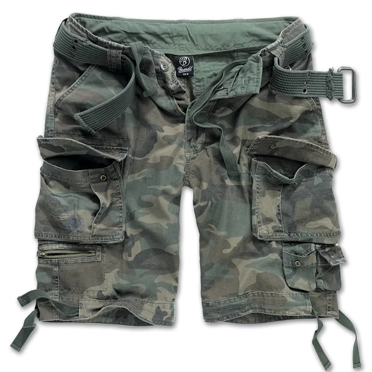 Die Brandit Savage Vintage Shorts (ehem. Gladiator Shorts) ist eine entspannte Cargo-Bermuda aus superleichter, weicher und dennoch robuster Baumwolle mit einem hochwertigen Vintagegürtel. Die tolle Sommerhose im äußerst bequemen und legeren Schnitt besitzt 2 große Bein-Cargotaschen mit Druckknopfverschluss, 2 Minipockets und ein praktisches Reißverschlussfach am Bein, 2 schräg aufgenähte Seitentaschen sowie 2 Gesäßtaschen. Damit ist sie die optimale Short für alle Aktivitäten im Outdoorbereich. Die verwaschenen Farben und der damit verbundene leichte Used-Vintage-Look sowie der dezente Army-Pocket-Print auf der rechten Beintasche machen die Savage Vintage Shorts zu einem echten Hingucker. Im Bund und an den Beinsäumen besitzt sie Tunnelzüge. Die Savage wird einem Reißverschluss (Zip-Fly) geschlossen.