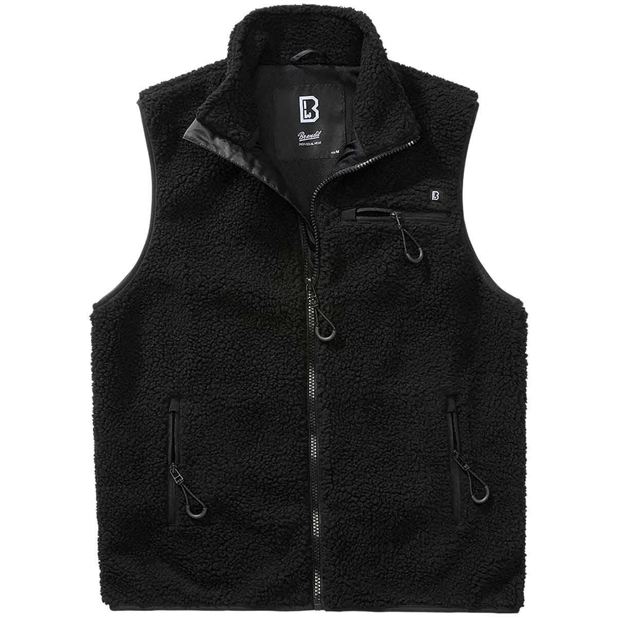 Die schwarze Teddyfleece Weste für Männer von Brandit mit Stehkragen und dem elastischen Saum ist eine wärmende Allroundweste aus hochflorig-warmen Teddy-Fleece. Das atmungsaktive Mesh-Innenfutter und der gerade Schnitt sorgen für ein angenehmes Tragegefühl. Ein hochwertiger Mittelreißverschluss, der Kinnschutz sowie die Windschutzleiste bieten ausreichend Komfort. Weitere praktische Details sind die 2 seitlichen Taschen mit Reverse-Reißverschlüssen. Die Innentasche wird mit einem hochwertigen Klettverschluss geschlossen. Alle Zipper-Puller sind vorgeformt und hochwertig verarbeitet. Diese bequeme Weste ist die perfekte Ergänzung Ihrer Garderobe für die kühlen Tage.
