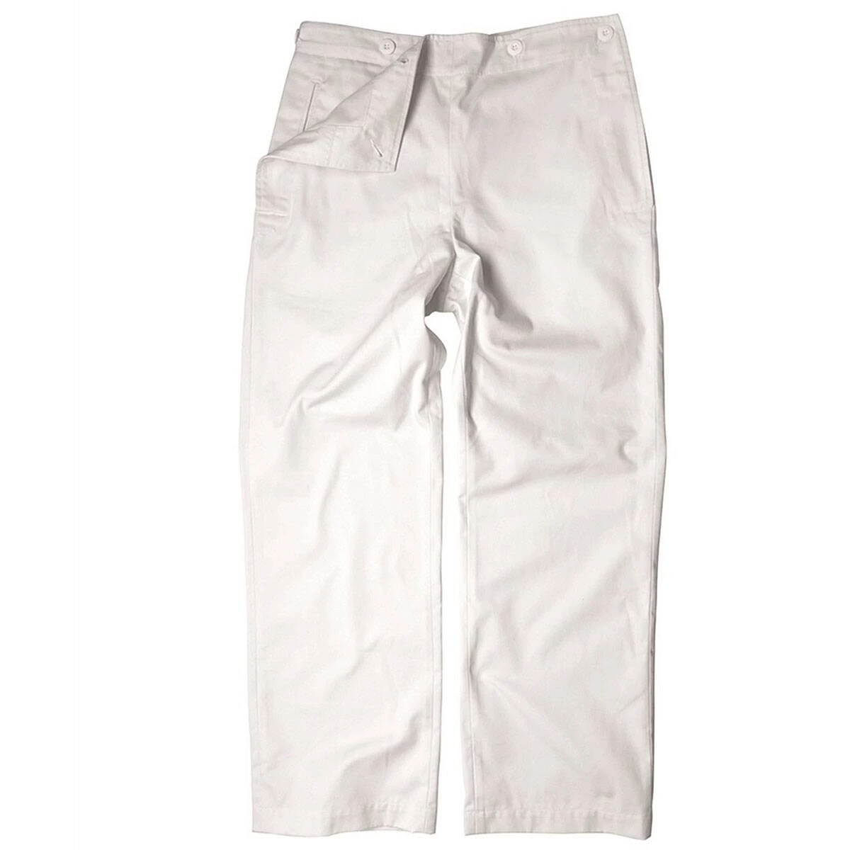 Der originalgetreue Nachbau der Marineklapphose der Bundesmarine besitzt die bewährte Frontklappe, mit der man den vorderen Teil der Hose schnell und einfach abknöpfen und umklappen kann. Sie hat seitliche Einschubtaschen, eine Gesäßtasche mit Knopf, eine Bügelfalte sowie einen Verschluss im Bund mit 2 Knöpfen. Die Bundweite ist mit Knöpfen 3-fach verstellbar. Diese Marinehose ist ideal für Karneval, Fasching oder echte Bootsmänner geeignet.