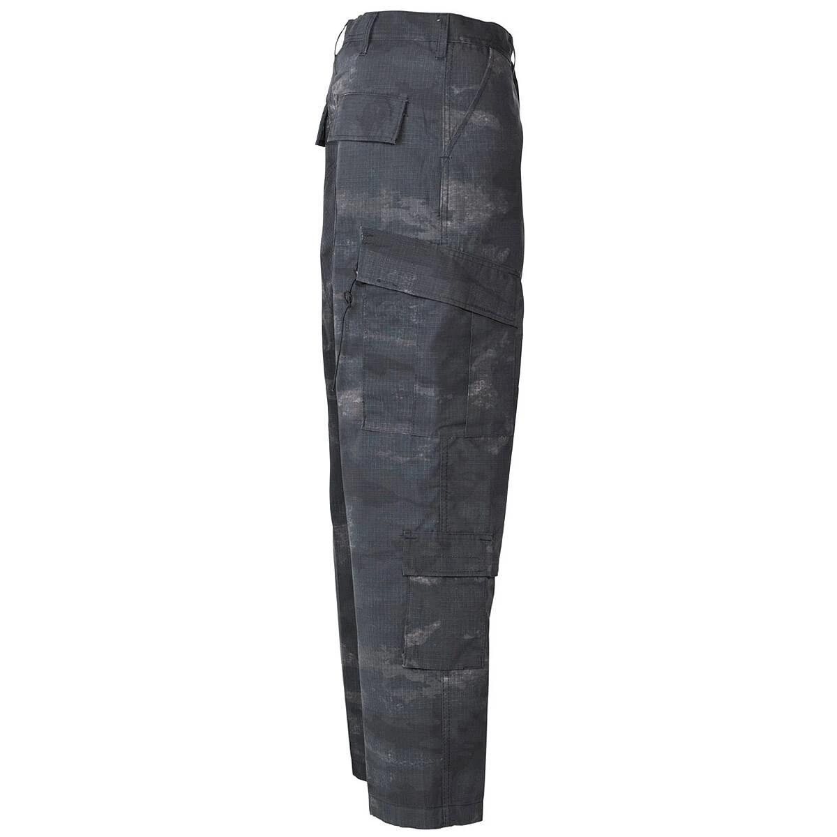 Die bewährte und unverwüstliche ACU Feldhose mit geknöpftem Hosenschlitz besitzt 2 seitliche Einschubtaschen und 2 Gesäßtaschen mit Patten und Knöpfen. Außerdem gibt es 2 schräge Beintaschen mit Klettverschluss und Sicherheits-Kordelzug sowie zusätzlich 2 seitlich aufgesetzte Pattentaschen mit Klettverschluss am Unterschenkel. Die Feldhose hat Verstärkungen an den Knien und dem Gesäß, wobei sich an den Knien zusätzliche Polster und Protektoren (nicht inklusive) unterbringen lassen. Am Beinabschluss befindet sich ein Zugband.